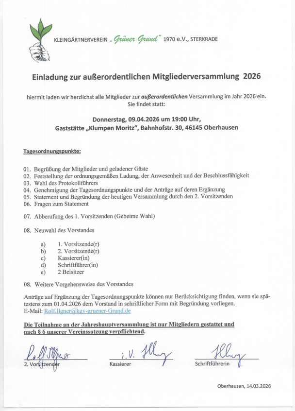 Informationen werden ebenfalls im Schaukasten bekanntgegeben!